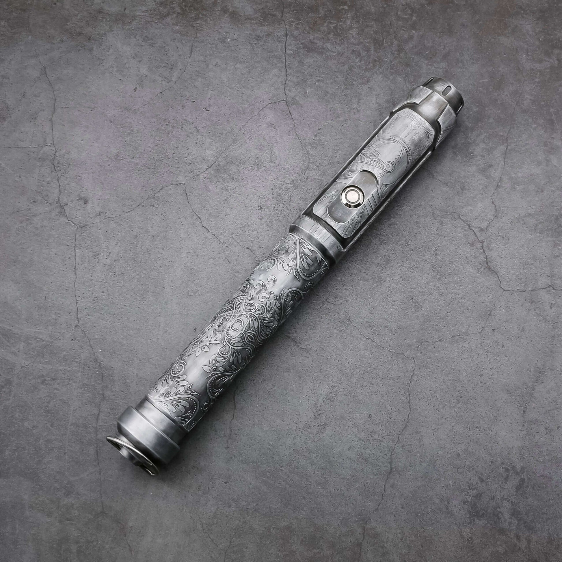 Introducing the Grete saber: A fusion of Nordic folklore and cutting-edge craftsmanship. Molded with aerospace-grade aluminum, this saber is influenced by the tales and legends of Northern Europe, shining with a distinct luminance from its LED blade.